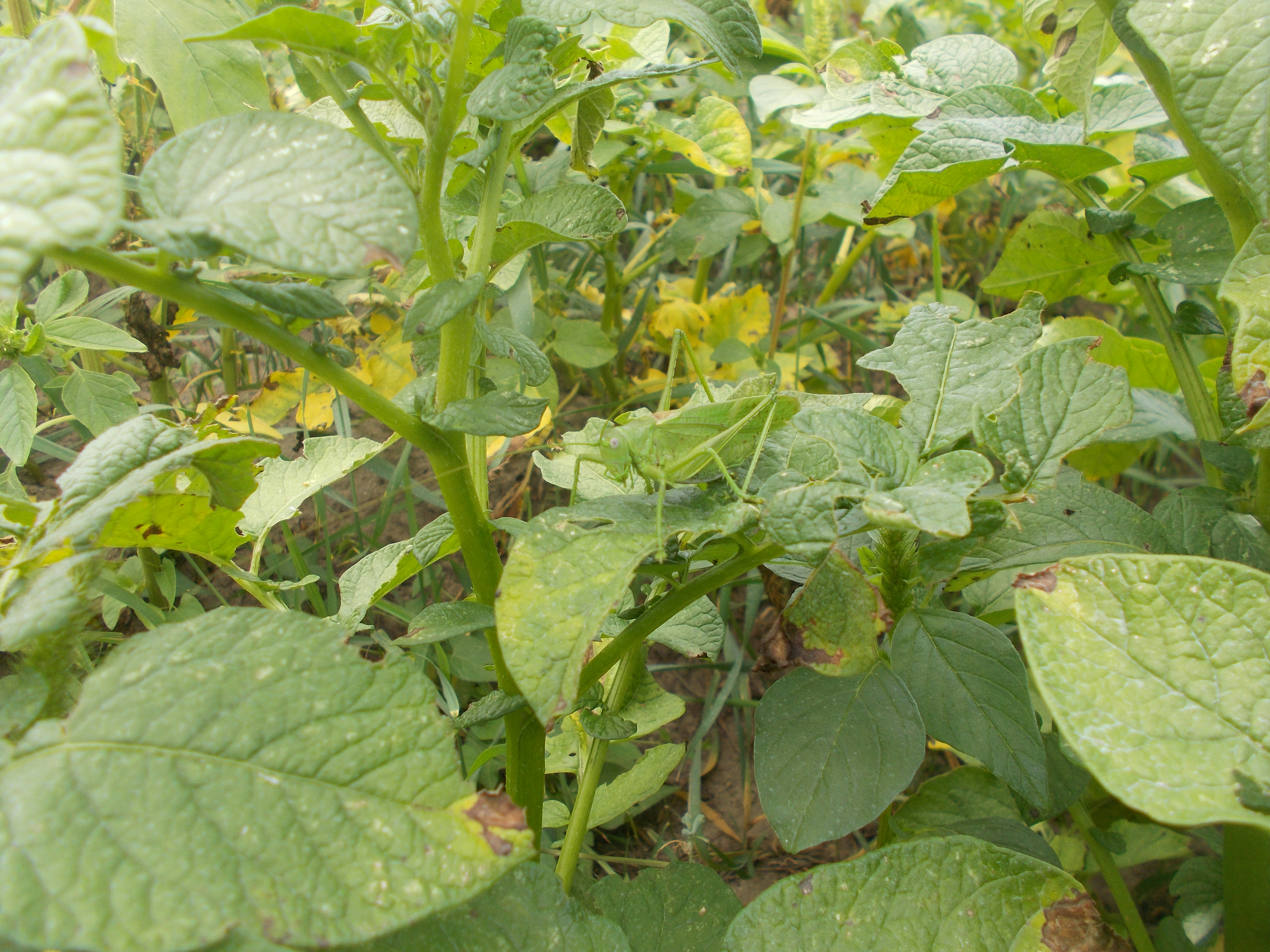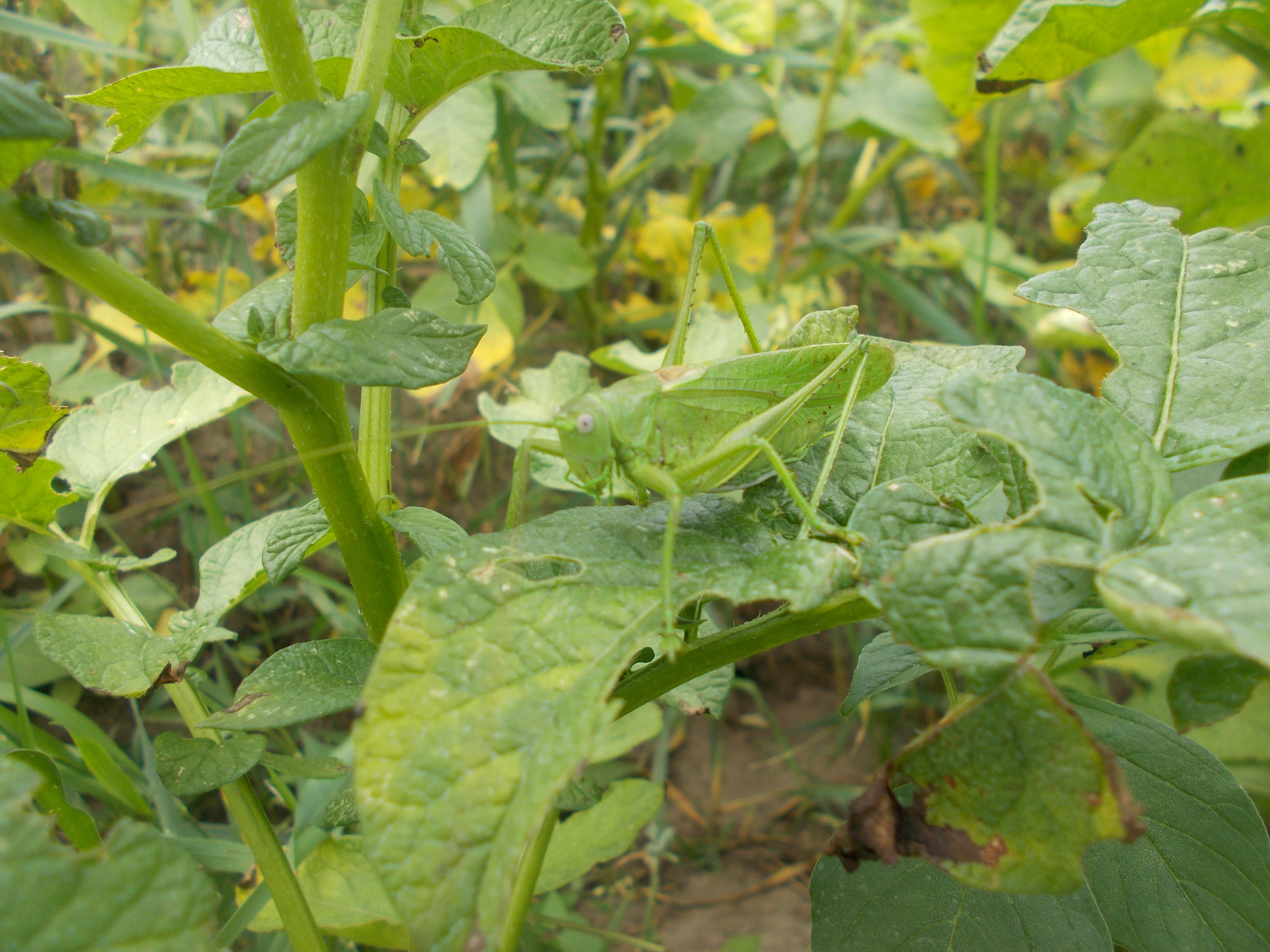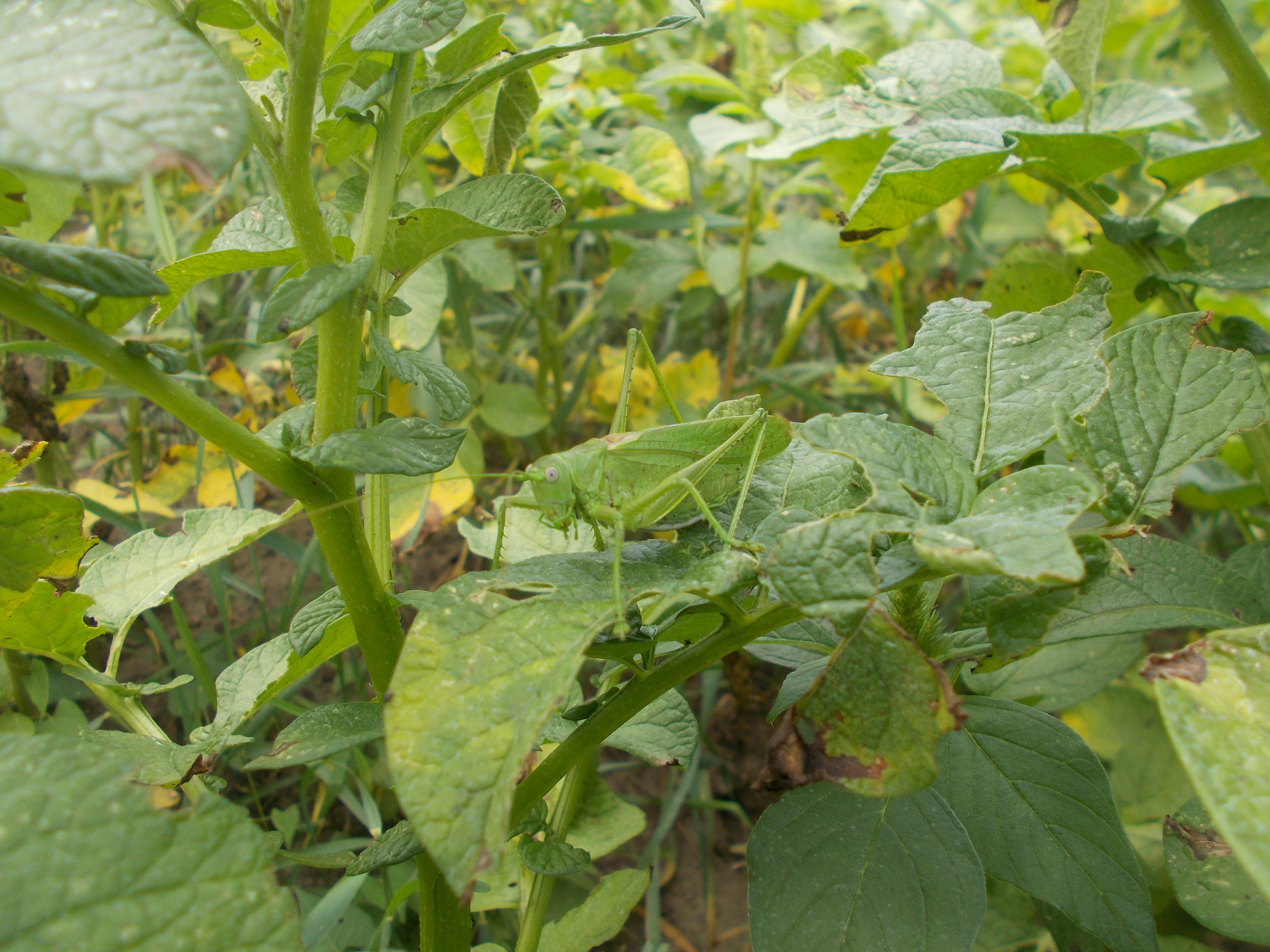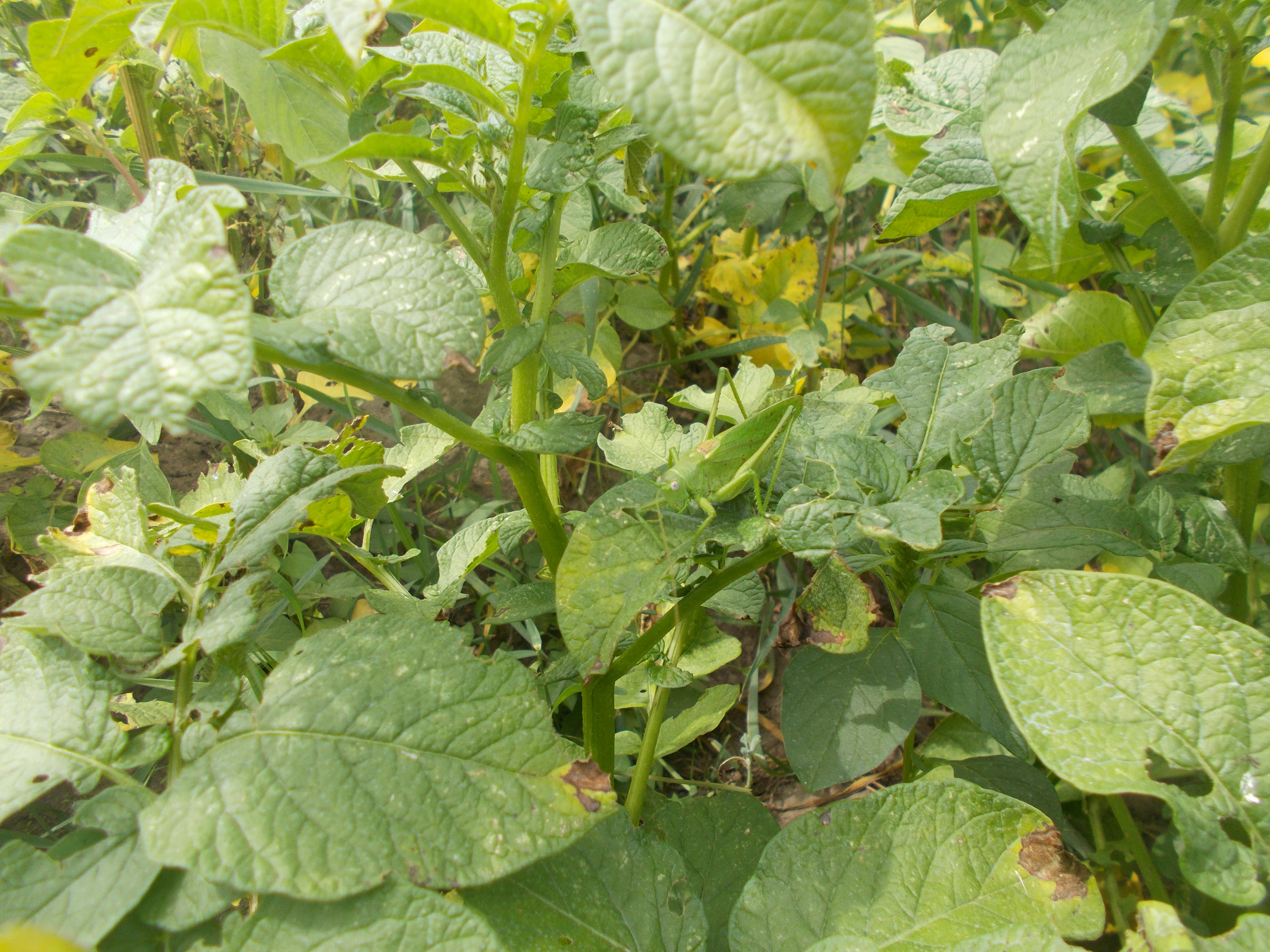 Das Grüne Heupferd ist ein kleiner Segen und ein wunderbarer Teil einer intakten Natur. Es ernährt sich überwiegend von Insekten, benötigt jedoch auch pflanzliche Nahrung. Eines seiner bevorzugten Hauptnahrung ist aber die Blattlaus. Zum Glück! Blattläuse zählen zu den saugenden Insekten und sind damit sogenannte Virusvektoren. Sie übertragen gefährliche Viren auf die Kartoffelpflanze. Hier konkret den Y-Virus, der enormen Einfluss auf den Ernteertrag hat, da er das Wachstum hemmt und an den Kartoffeln ringförmiges Totgewebe ausbildet (Nekrosen). Diese Kartoffeln sind dann unverkäuflich - also herzlichen Dank an diesen überaus nützlichen Helfer!